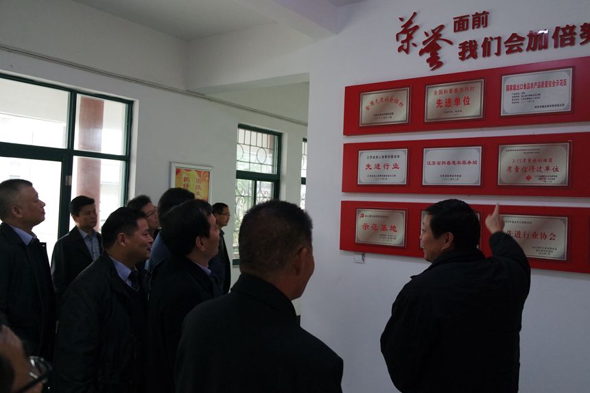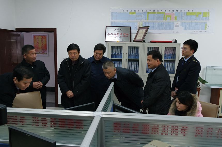 2015年11月12日下午,江苏出入境检验检疫局第二巡视组郭喜良组长一行6人,在赣榆区委常委苏长晓、区委办公室副主任顾涛、墩尚镇党委书记陆建国、泥鳅协会会长乔宗礼的陪同下,到墩尚镇国家级出口泥鳅示范区调研,并听取了示范区负责人对检验检疫工作的意见建议,对园区建设工作高度评价并给予充分 的肯定。